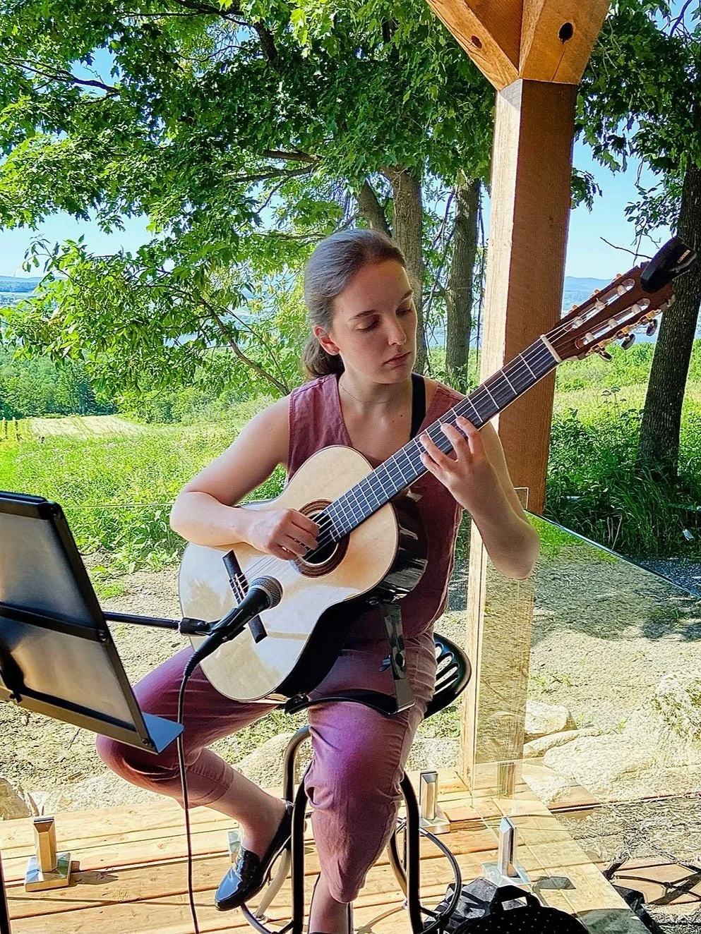 Elle a fait ses premiers pas à l'École de musique Côte-Nord et a poursuivi ses études en guitare classique dans le programme Anna-Marie-Globenski de l'Université Laval, ce qui lui a permis de se produire en spectacle à plusieurs occasions, notamment lors des concerts des Jeunesses Musicales du Canada.